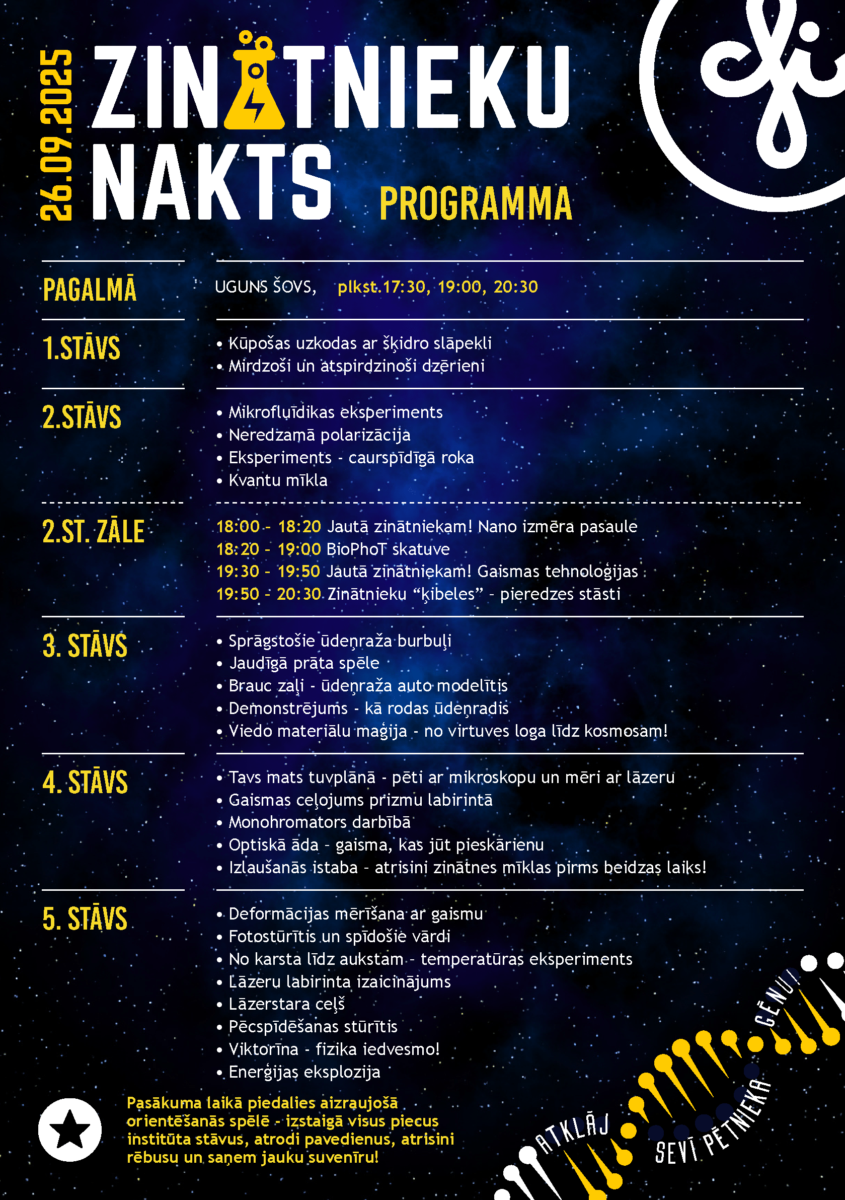 Zinātnieku naktī Latvijas Universitātes Cietvielu fizikas institūts pārtop par aizraujošu fizikas piedzīvojumu – eksperimenti, aktivitātes un pārsteigumi visos piecos ēkas stāvos!