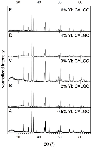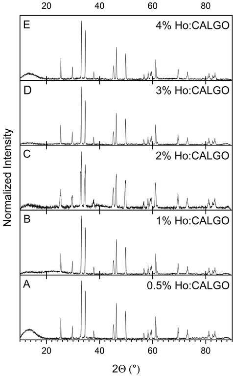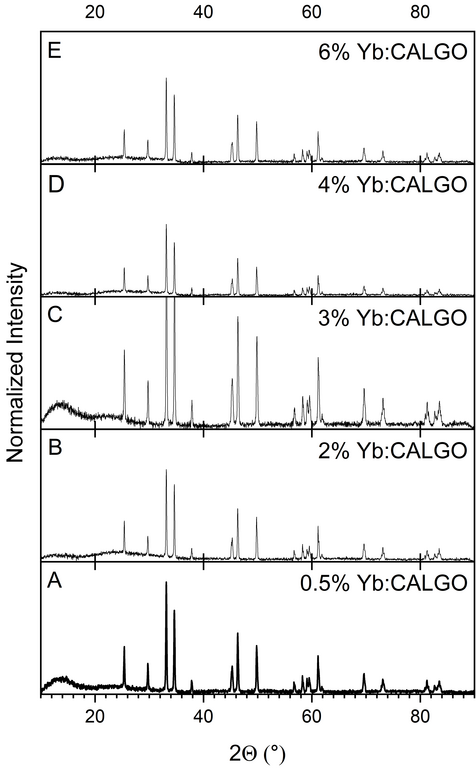 A comprehensive synthesis protocol using the solid-state technique was developed and refined for producing CALGO and CALYO powders doped with Yb, Ho, and other selected lanthanoid elements.