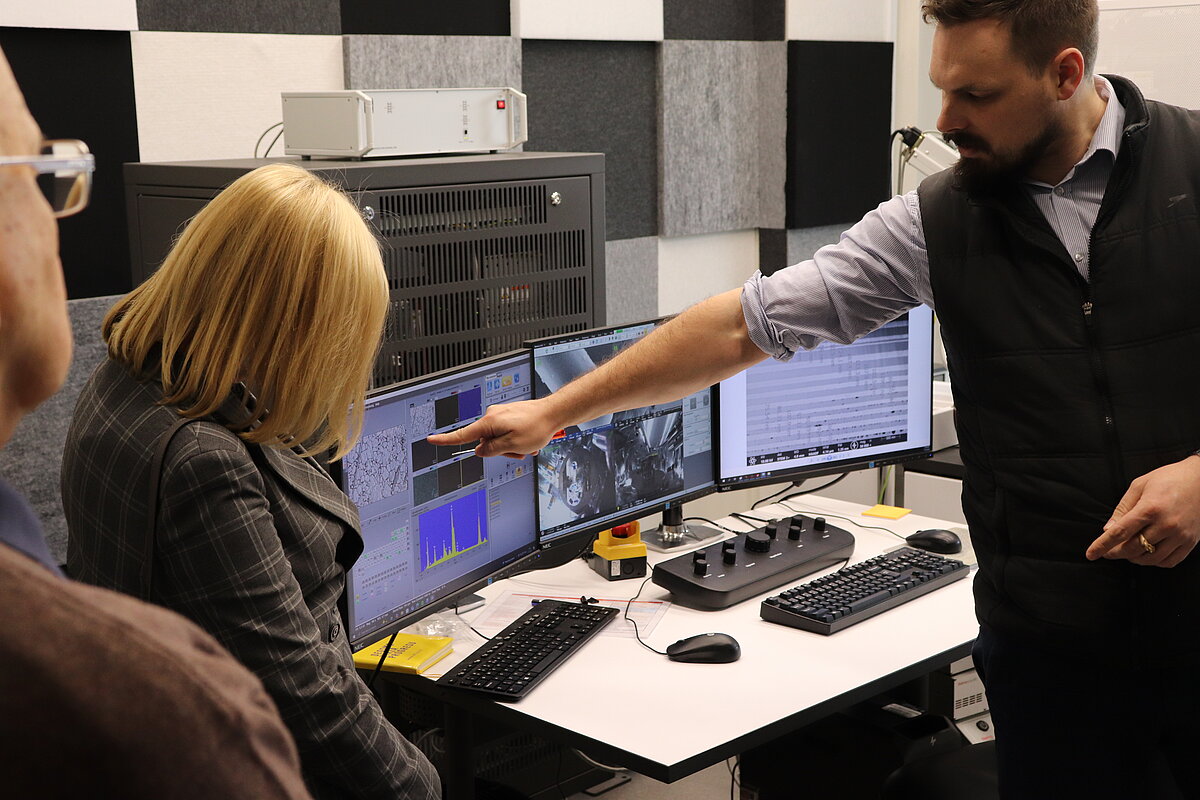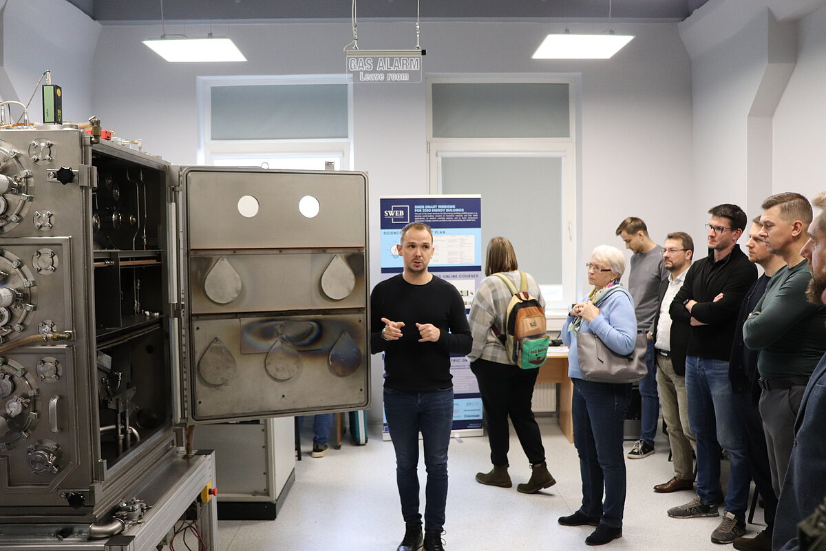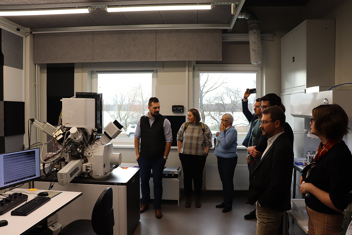 Pēc prezentācijām un produktīvām diskusijām dalībnieki devās arī nelielā laboratoriju tūrē, kur klātienē apskatīja mūsu pētniecības infrastruktūru un aprīkojumu, kā arī uzdeva jautājumus nozares ekspertiem.