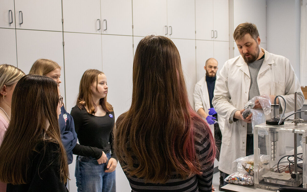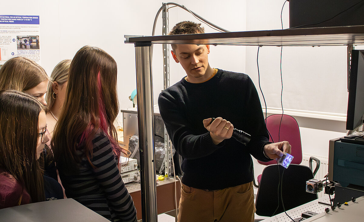 Ekskursijā pa institūta laboratorijām jaunietes tuvāk aplūkoja darbu ar materiāliem, kuri reaģē uz dažādu spektru gaismu, un iekārtām, kuras pētnieki izmanto spektroskopiskiem mērījumiem. Ar LACISE projekta dalībnieku iesaisti meitenes iepazina litija jonu bateriju pētniecību un bija iespēja pašām salikt savu bateriju, kā arī uzzināt vairāk par ūdeņraža enerģiju un tās pielietojumiem, lai darbinātu, piemēram, transportlīdzekļus.