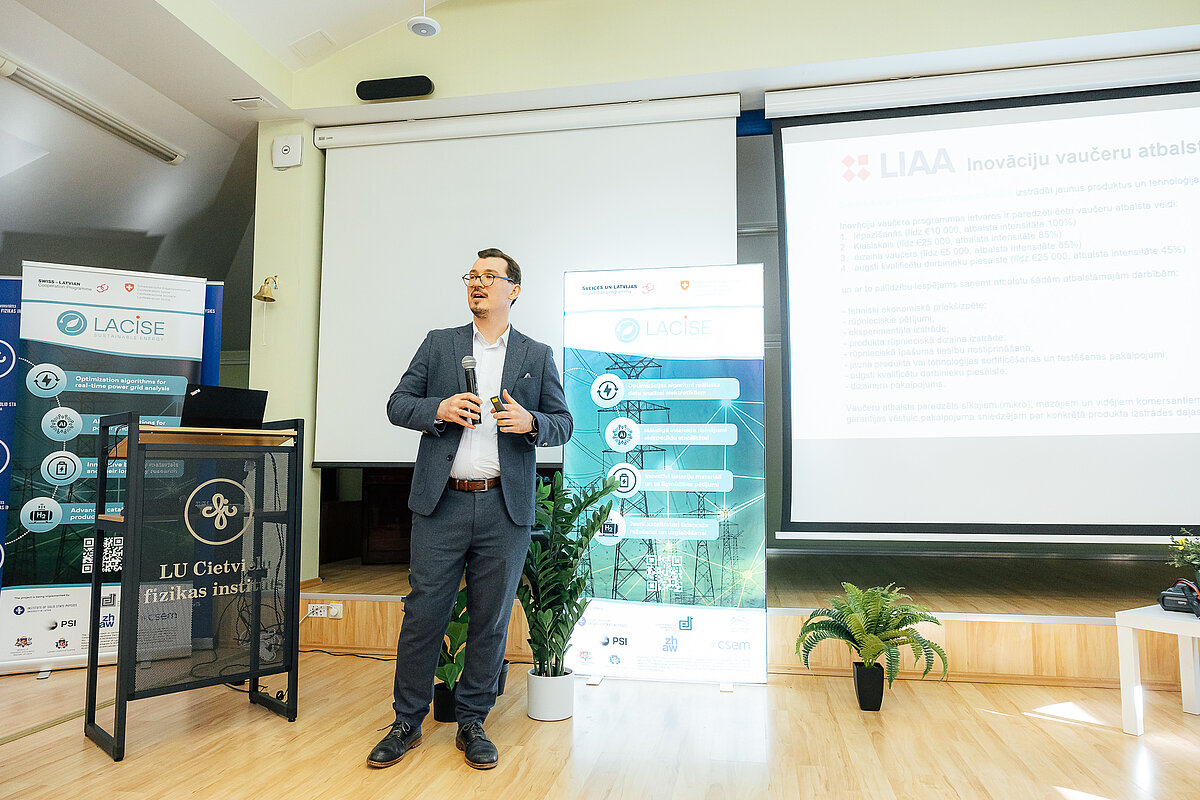 Pasākuma otrajā daļā pieredzē dalījās A/S “Latvenergo” attīstības projektu vadītājs Māris Sedlenieks un “ABB Schweiz AG” vadošais pētnieks Minglong He, kurš ieskicēja pētniecības un industrijas sadarbības praksi un jaunākās tendences bateriju attīstībā Šveicē. Savukārt LU CFI Starptautisko projektu un piesaistes speciālists Timurs Safiluļins informēja par finansējuma un sadarbības iespējām Latvijā un Eiropā.