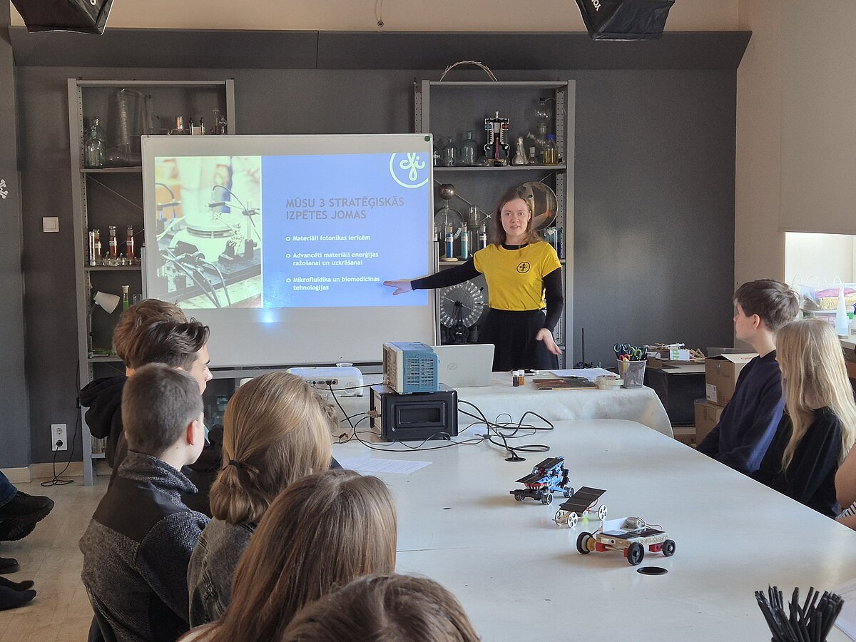 9. martā Latvijas Universitātes Cietvielu fizikas institūta pētnieki viesojās Laboratorium Zinātnes Skolā, kur iepazīstināja jauniešus ar luminiscenci un vadīja meistarklasi, kuras gaitā skolēni varēja paši savām rokām izgatavot elektroluminiscentus paneļus.