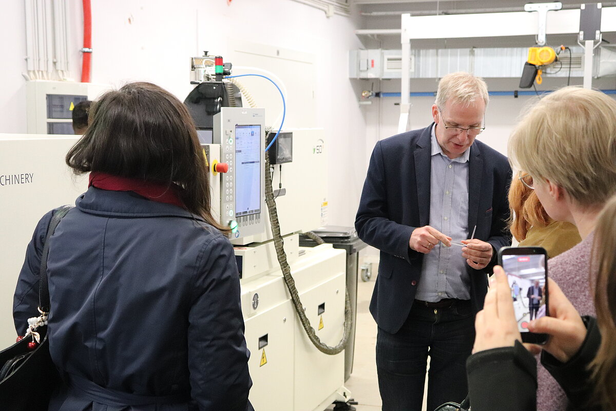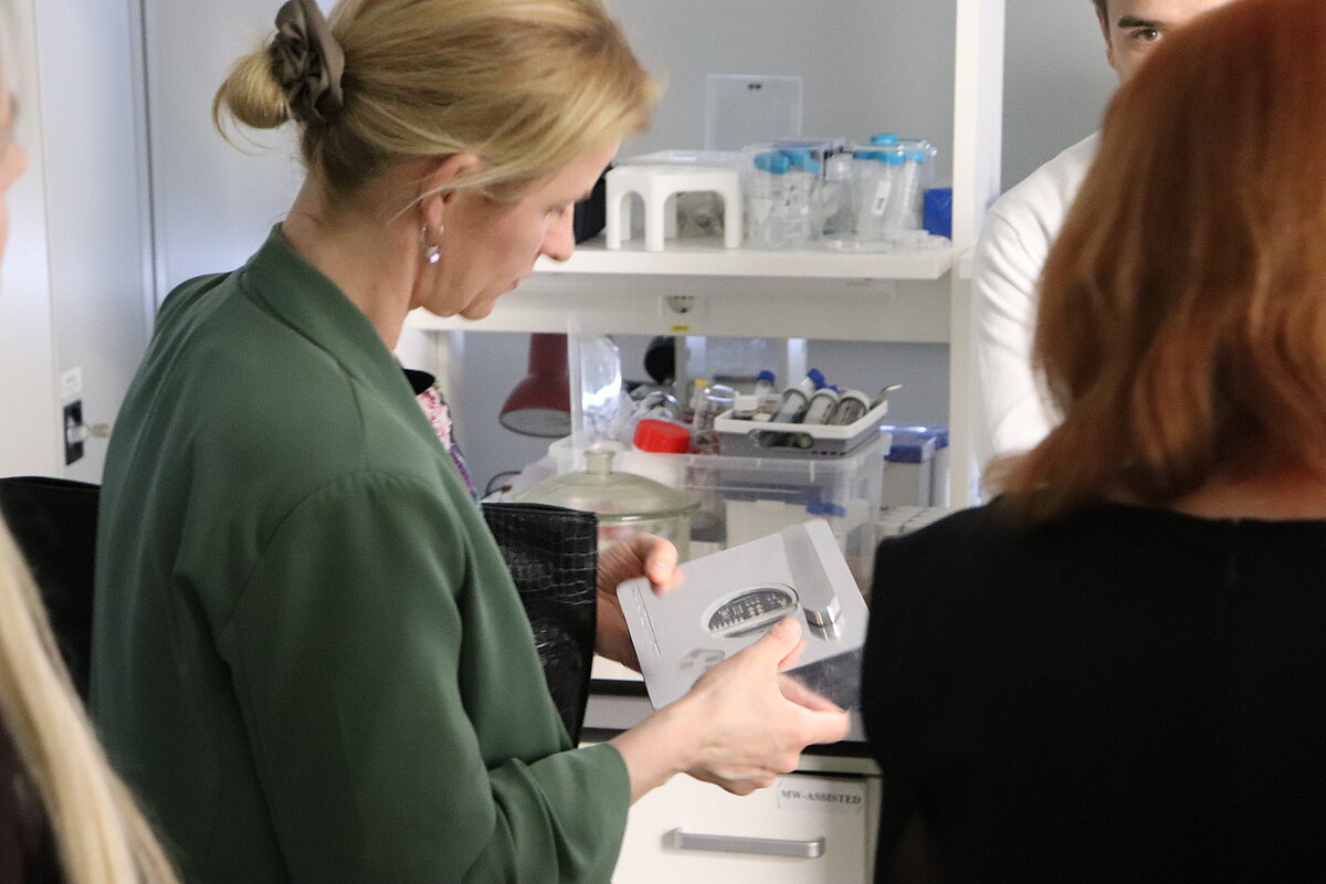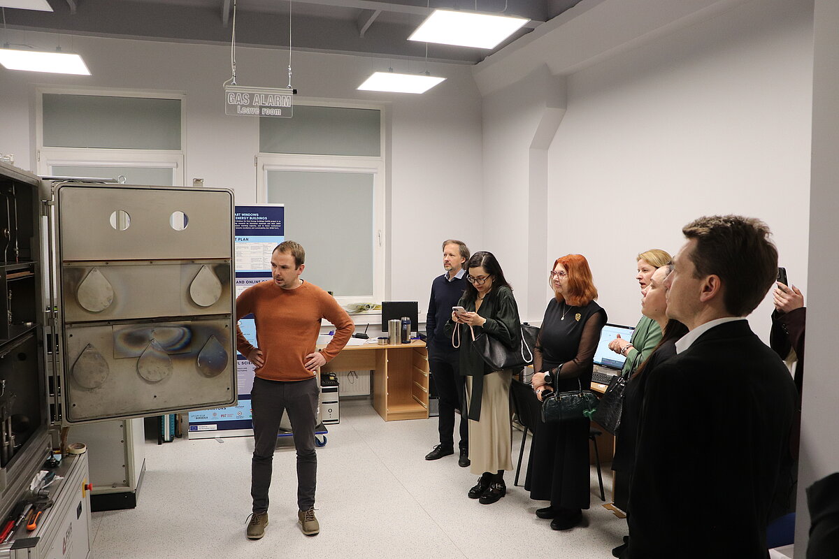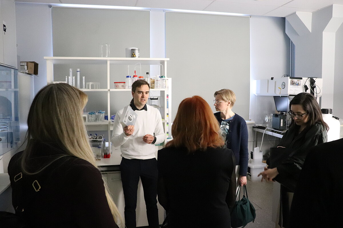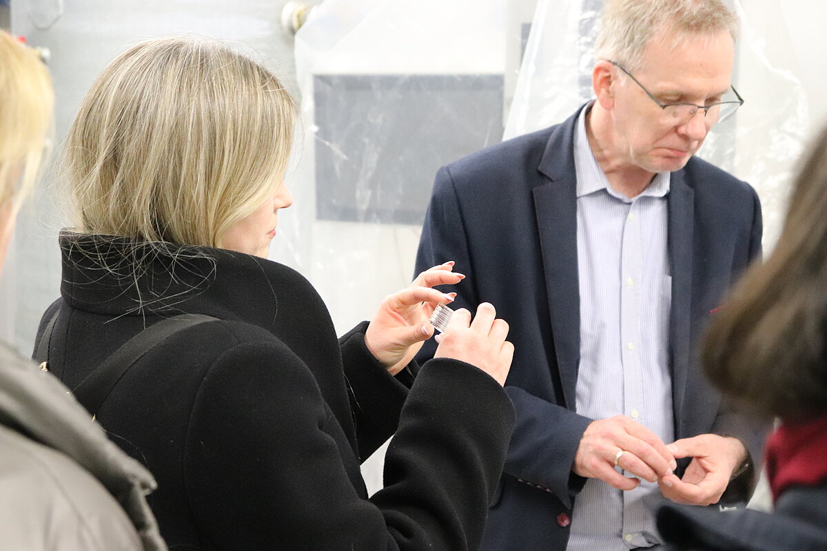 Saturīgajai apspriedei sekoja ekskursija pa LU CFI laboratorijām, fokusējoties uz institūta ieguldījumu inovāciju attīstībā – dalībnieki iepazinās ar institūtā realizētajiem BioPhoT projektiem, piemēram, DARS, kā arī LU CFI tehnoloģiju komercializācijas veiksmes stāstu Spectromarine. Tika apskatīti arī jaunākie sasniegumi institūta infrastruktūras attīstībā, kas ļauj vēl vairāk satuvināt zinātni ar industriju, piemēram, nesen atklātā mikrofluīdikas pilotlīnija.