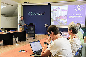 Direktors Andris Anspoks klātesošos iepazīstināja ar LU CFI zinātnisko darbību un tā attīstības stratēģiju, bet par institūta inovācijām un tehnoloģiju pārnesi viesiem pavēstīja Attīstības daļas vadītājs Jānis Latvels.